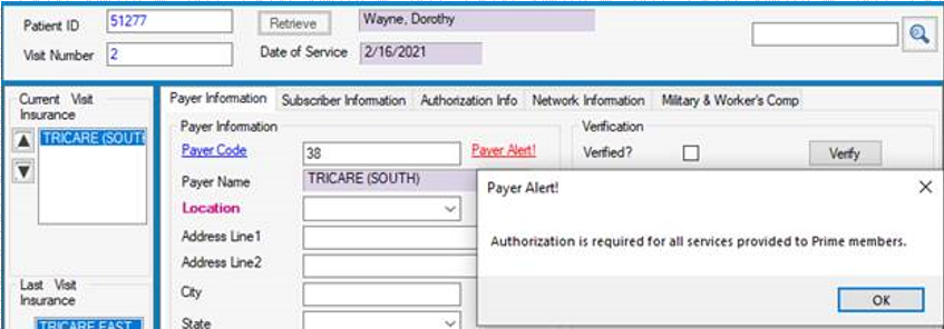The Payer Alert! is a free text field that will appear as a red hyperlink in the following forms.