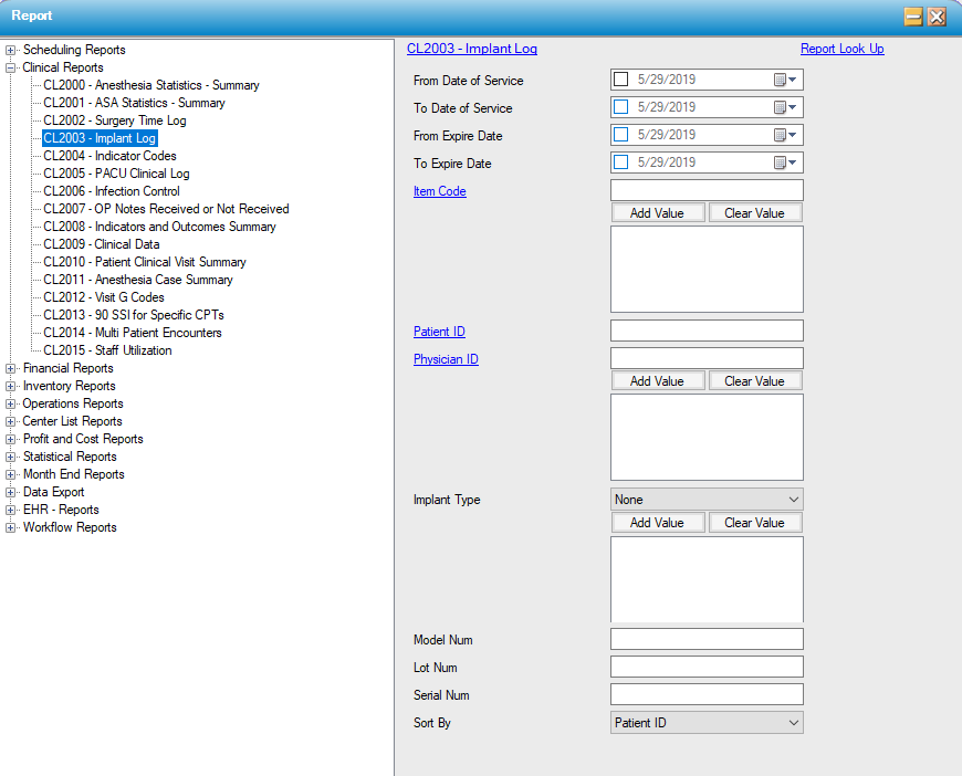 Run this report based on scheduled date range, expiration date range, specified Item Code(s), individual Patient ID or Physician ID(s).  Filter by specific Model Number, Serial Number, or Lot Number of an individual implant if applicable.