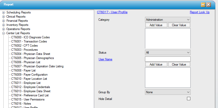 To see a list of all users with Billing permissions, select Category of Billings, and applicable Reports categories, such as Operations Reports and Month End Reports, then group by Category.
