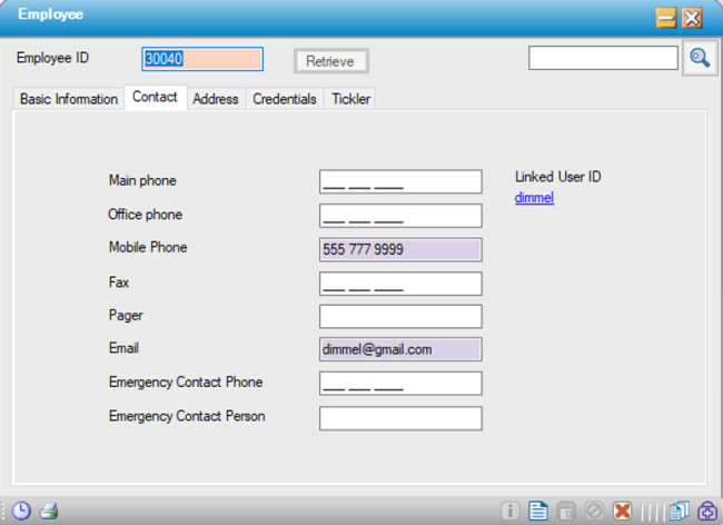 | Mobile Phone | When a linked User Profile exists, this field will be Read Only. This data can only be updated from the User Profile form and can be synchronized up to the Employee Record. |