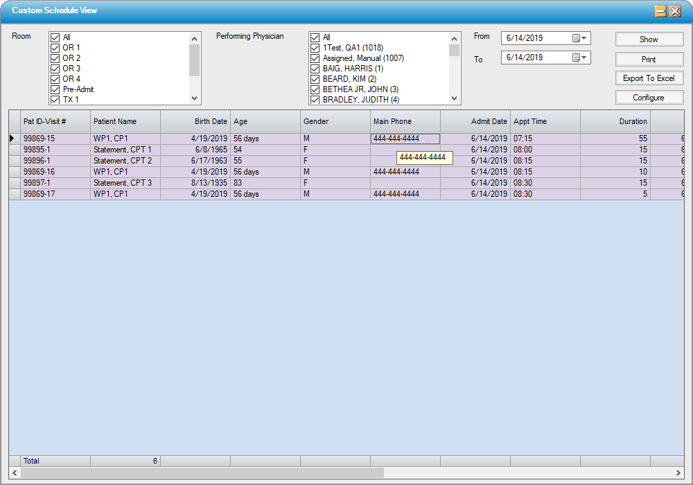 Select the desired room(s), physician(s), and date range and then click to populate the grid.
