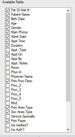 This is a printable  grid view of all possible scheduling/appointment fields.