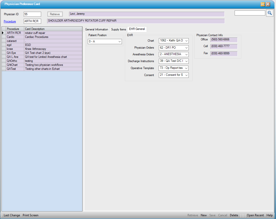 • Enter information for the Preference Card on the General Information tab.  These items are related to physician preferences as well as room and patient preparation.